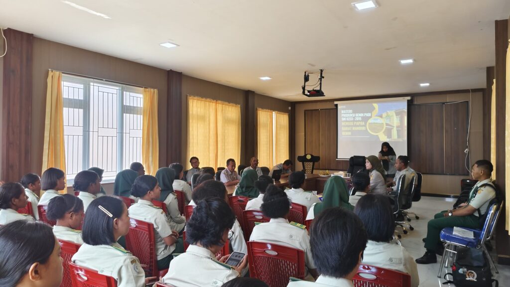 MANOKWARI – Sebanyak 41 mahasiswa Politeknik Pembangunan Pertanian (Polbangtan) Manokwari program studi Penyuluhan Pertanian Berkelanjutan (PPB) melakukan kunjungan edukasi ke Badan Perakitan dan Modernisasi Pertanian (BRMP) Papua Barat guna mendalami teknologi produksi benih unggul, Kamis (23/01/26). Kegiatan ini bertujuan untuk