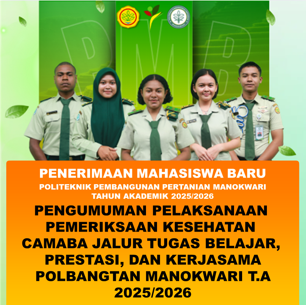 UNTUK YANG DILUAR MANOKWARI HARAP KUMPULKAN HASIL TES KESEHATAN DI LINK: https://sehat.polbangtanmanokwari.ac.id/